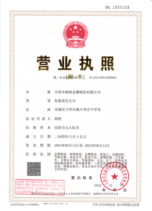 公司名稱: 天津市銀海金屬制品有限公司